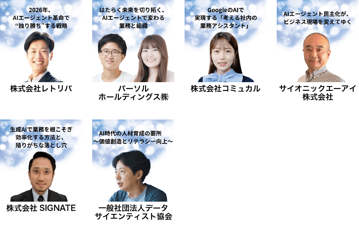 最先端の「AIエージェント」技術動向を把握したい方、当日ご来場いただけなかった方にとって、見逃せない内容となっております。ぜひこの機会にご視聴ください。