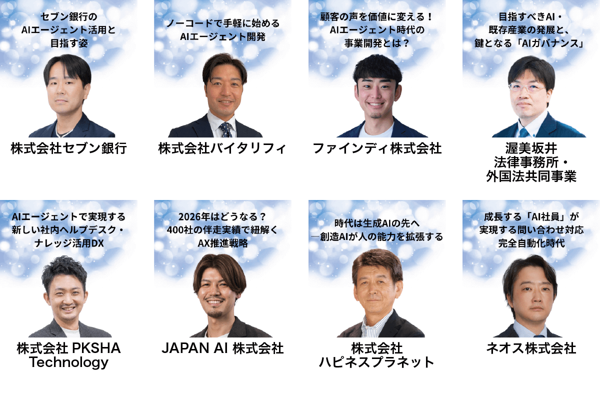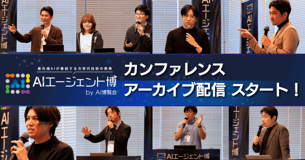 国内最大級のAIポータルメディア「AIsmiley」を運営する株式会社アイスマイリーは、2025年12月11日(木)・12日(金)の2日間にわたり開催した「AIエージェント博 by AI博覧会」のカンファレンスのアーカイブ配信を2月9日(月)より開始いたしました。「AIエージェント」分野の第一線で活躍する登壇者たちによる貴重なセッションの数々は、ビジネスパーソン必見の内容です。
