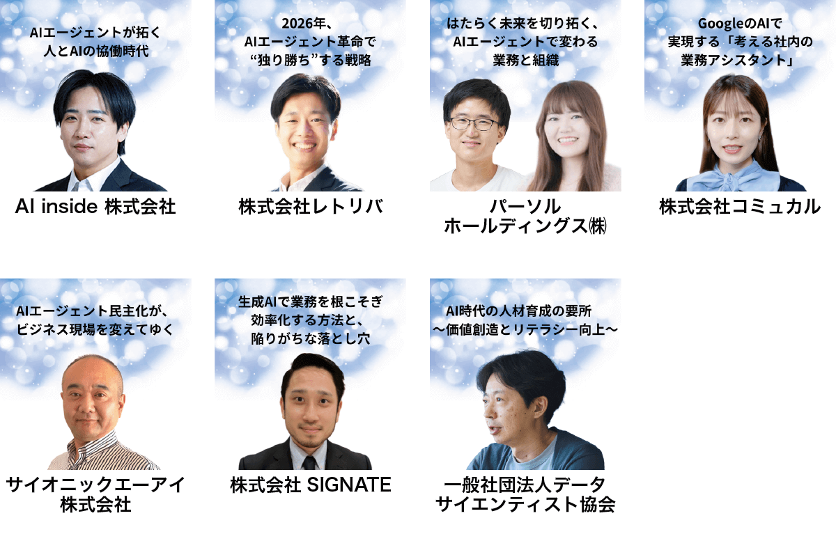 最先端の「AIエージェント」技術動向を把握したい方、当日ご来場いただけなかった方にとって、見逃せない内容となっております。ぜひこの機会にご視聴ください。