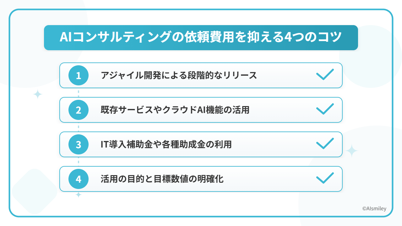 全体像が固まりきっていない段階で一括発注してしまうと、後からの修正コストが膨らむリスクが高いため、まず小さく始めて確実に成果を積み上げるアプローチが費用を抑える上で有効な戦略です。