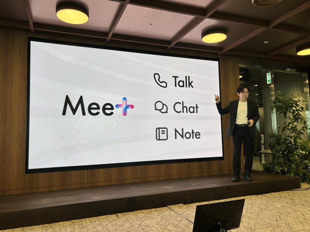 渡久地氏は、新製品「Mee+」の紹介デモンストレーションとして、AIと会話する様子を披露しました。AIは自然な音声で応答し「Mee+は個人向けのパーソナルAIです。毎日の仕事や生活で出てくる考え事を整理して、そっと支えてくれます」と、Mee+自身の説明を行いました。