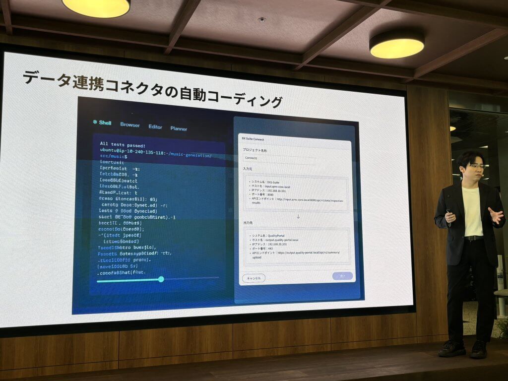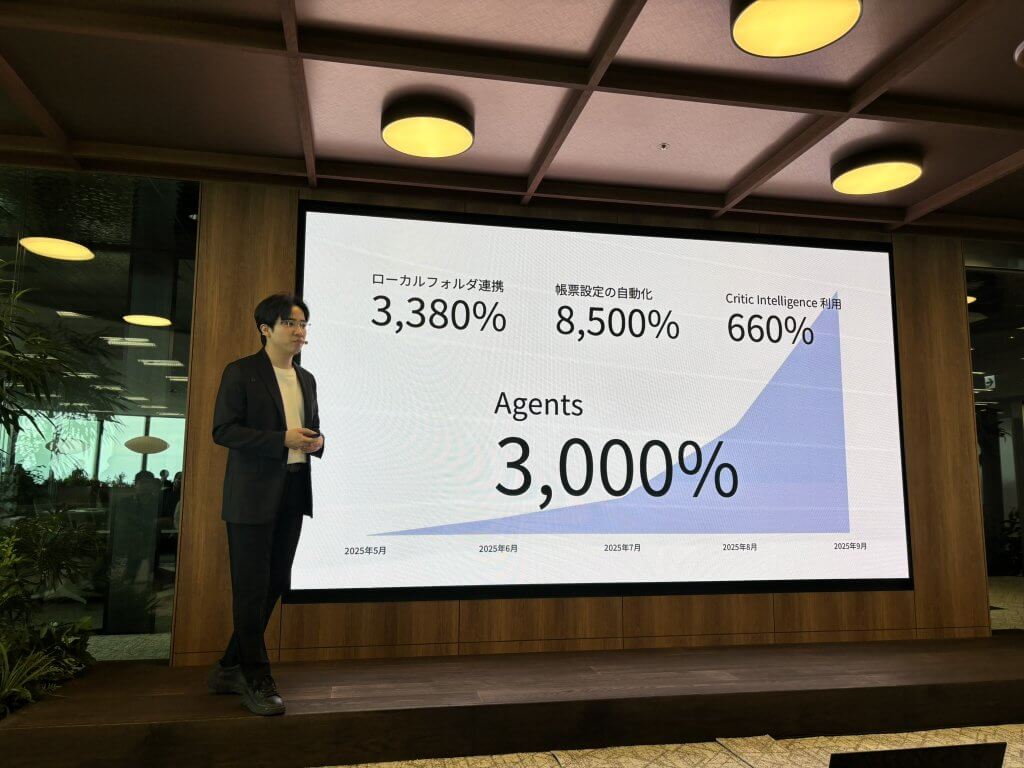 「AIでビジネスを獲れ。AIに奪われる前に。」をキャッチコピーにした本イベントでは、データ入力を自動化するAIエージェント「DX Suite」の最新アップデート情報や、データ活用を支援するRAG生成サービスの紹介が行われ、AIが業務だけでなく、日常のあらゆる場面に自然に溶け込む未来を垣間見ることができました。