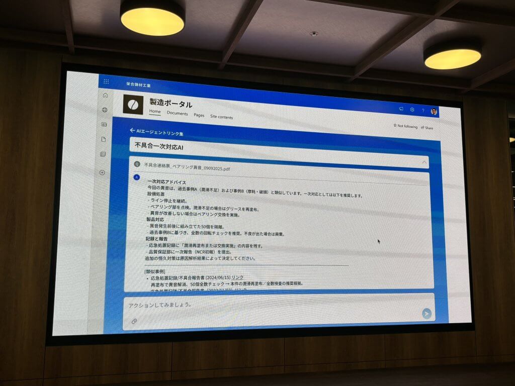 デモ映像では、製造業の現場で問題が発生した場合の活用方法が流れました。過去のデータを「Leapnet」に読み込ませるだけでRAGを作成し、発生した問題について書かれた調査票を読み込ませます。その後、不具合に対する一次対応をエージェントに聞くと、RAGから過去のデータを参照して対応策を出力します。
