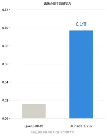 また、画像・音声・テキストを1つのモデルで統合的に処理する仕組みを実現しました。画像内容を日本語で説明する評価では、Qwen3-8B-VLとの比較において約6.1倍の説明精度を確認しています。