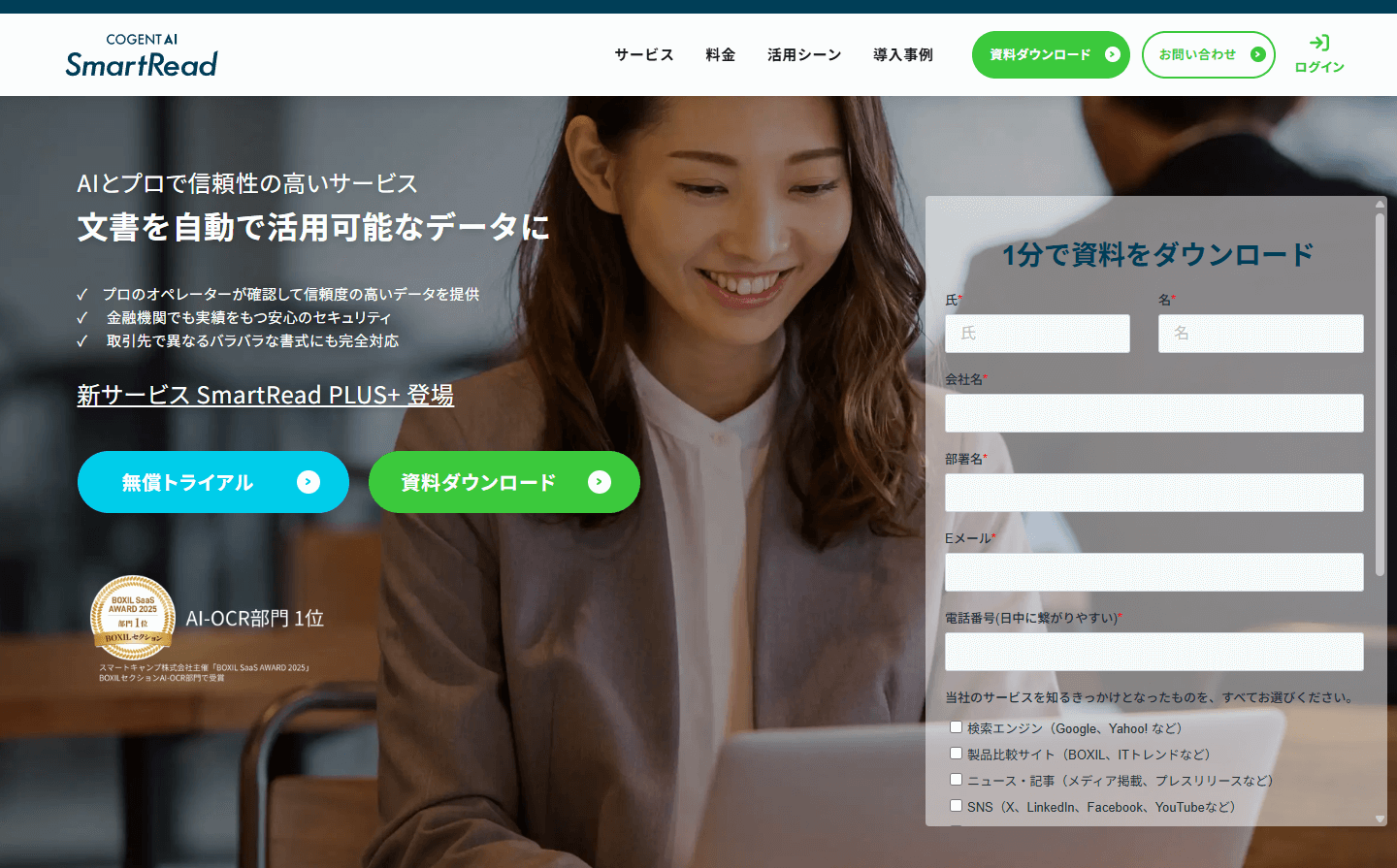 インフォディオ株式会社の提供する「スマートOCR」はAI-OCRを利用したサービスです。紙に書かれた文書やフォームから画像データをスキャンまたは撮影し、それをテキストデータに変換します。ディープラーニングの技術を活用し、手書きの文字や非標準のフォームなど、従来のOCRでは対応が困難だった領域に対しても高精度の読み取りが可能となりました。