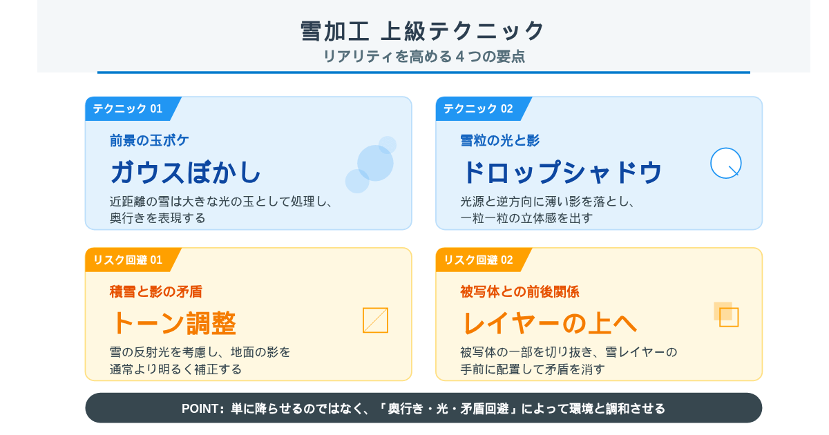 自然でリアルな雪加工を実現するための上級テクニックと注意点