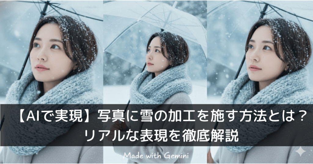 本記事は、初心者でも手軽に使えるスマートフォンアプリから、話題のAI画像生成ツール、プロが使うPhotoshopまで、あらゆるツールを使った雪加工の具体的なやり方を徹底解説します。