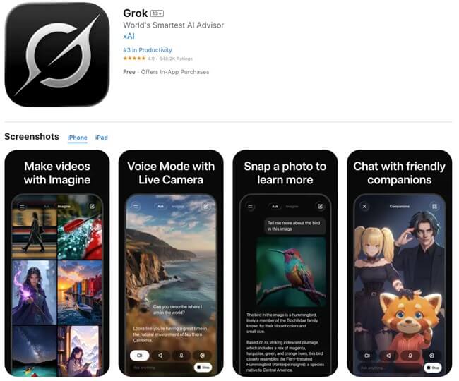 Grok 音声・チャット 基本無料 (有料プランあり)