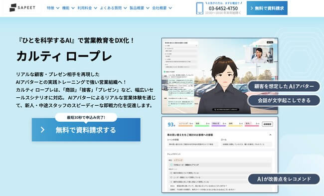 AIアバターを対話相手として、営業や接客のロールプレイングを繰り返し行う実践型の研修サービスです。