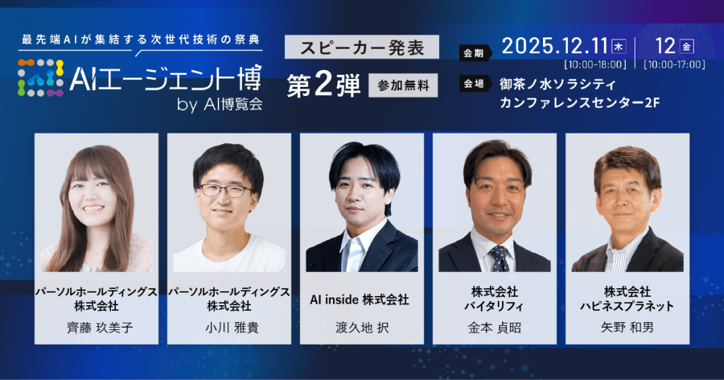 会場では、専門家による講演や、AIエージェントが実際に稼働するデモンストレーションを多数実施。来場者は”自ら動き出すAI”を直接体験できるだけでなく、来るべきAIエージェント時代に向けた具体的なビジネス課題を解決する絶好の機会となります。