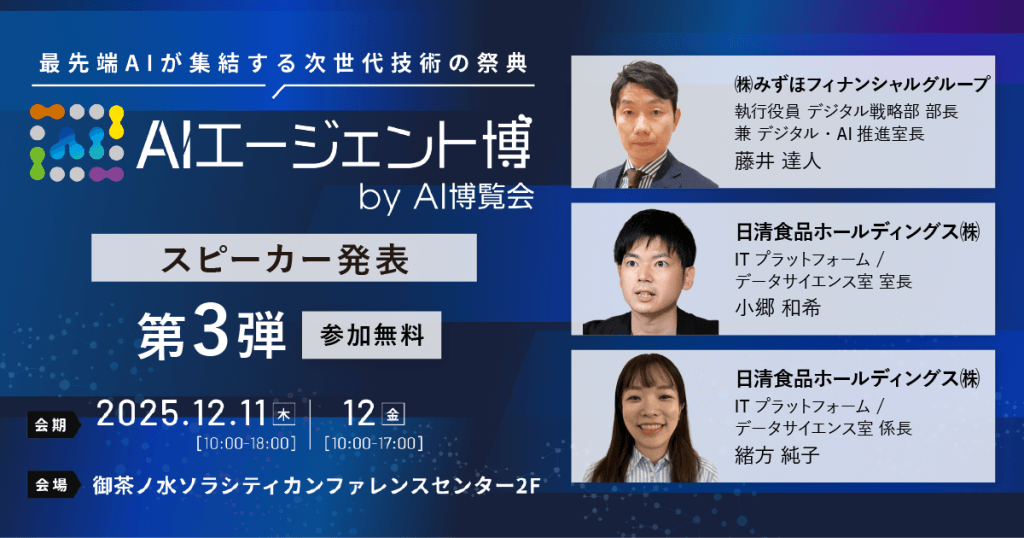 会場では、専門家による講演や、AIエージェントが実際に稼働するデモンストレーションを多数実施。来場者は”自ら動き出すAI”を直接体験できるだけでなく、来るべきAIエージェント時代に向けた具体的なビジネス課題を解決する絶好の機会となります。