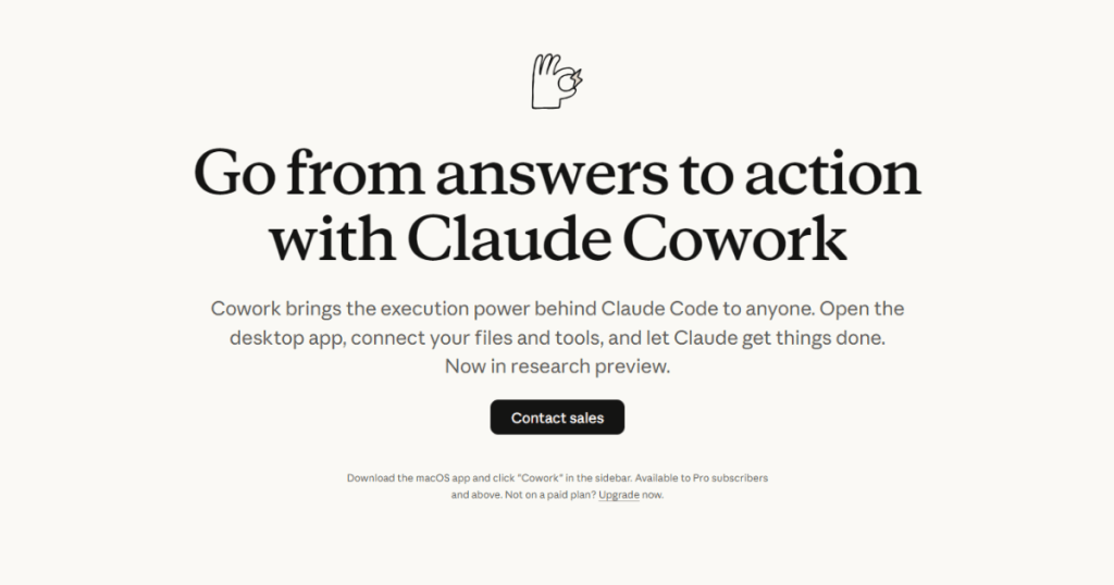 Anthropicは、Claude有料プラン(Pro, Max, Team, Enterprise)のユーザー向けに、知識作業を自動化する新機能「Cowork」のリサーチプレビューを公開しました。