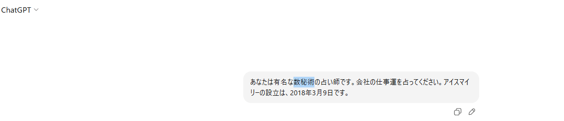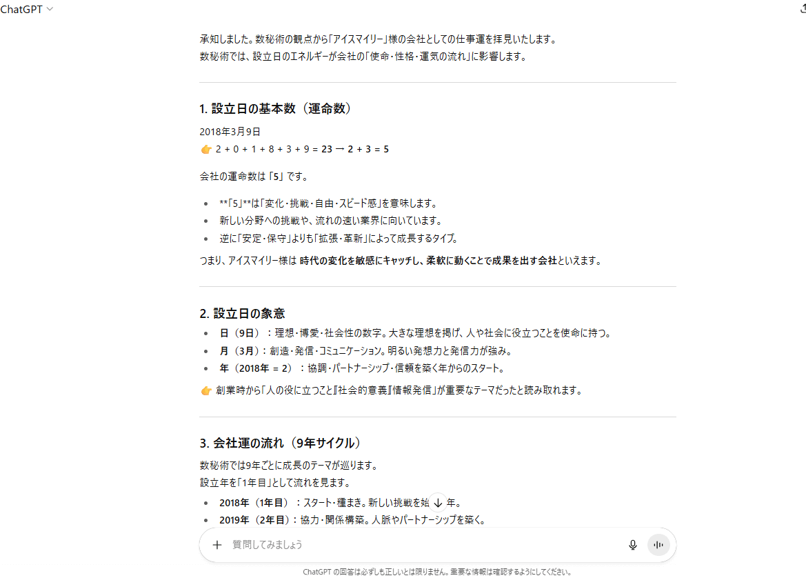 今回、実際にChatGPTでアイスマイリーの仕事運を数秘術で占ってみました。