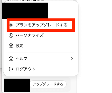1. ChatGPTにログインし、「プランをアップグレードする」をクリック