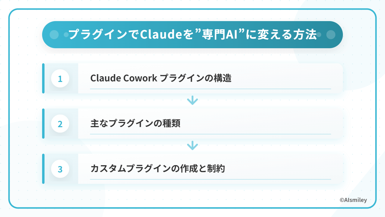 Claude Cowork のプラグインは、以下3つの要素で構成されています。
