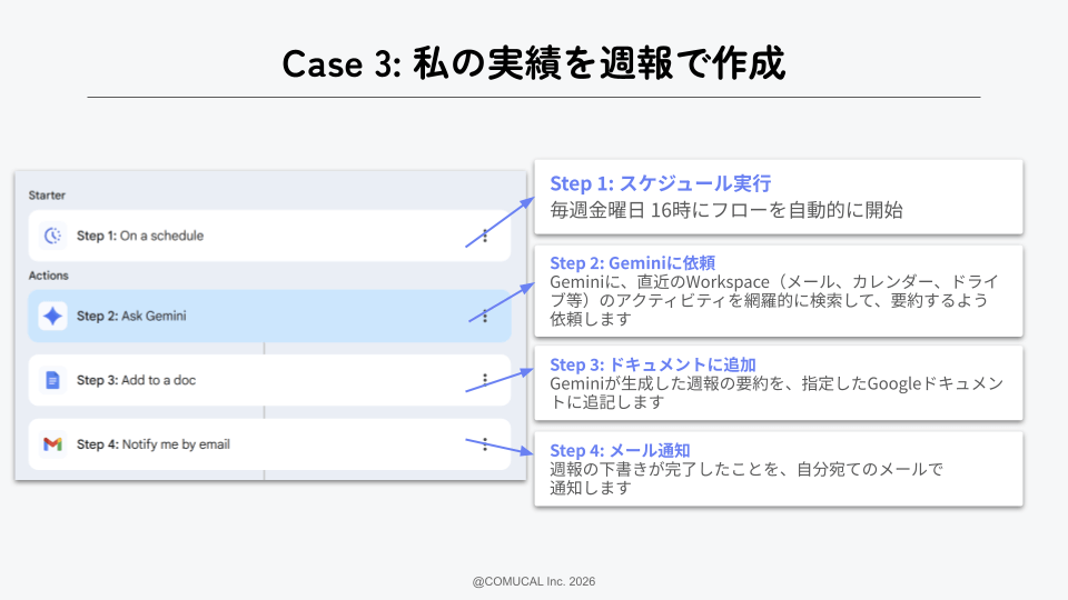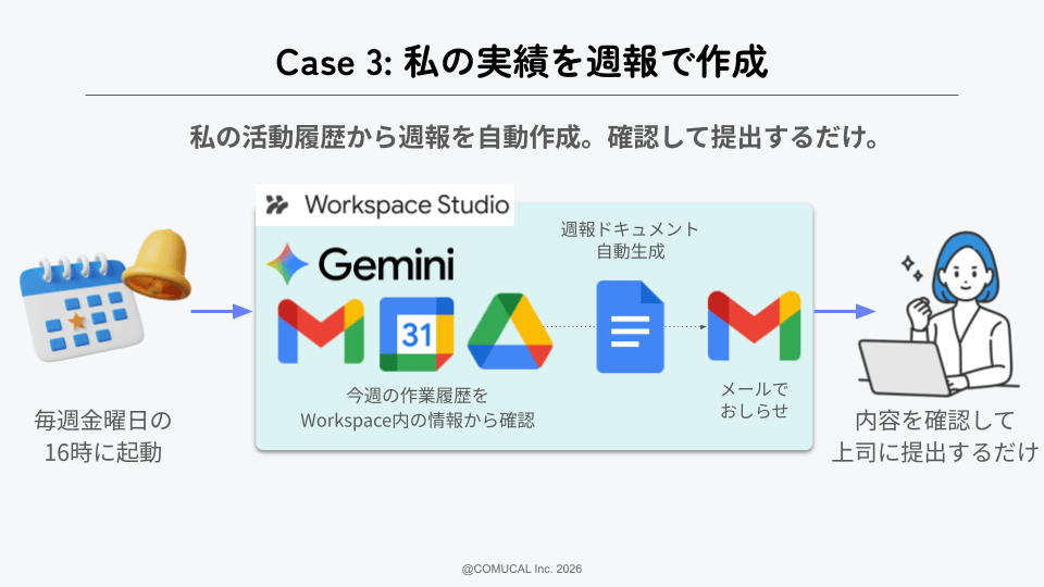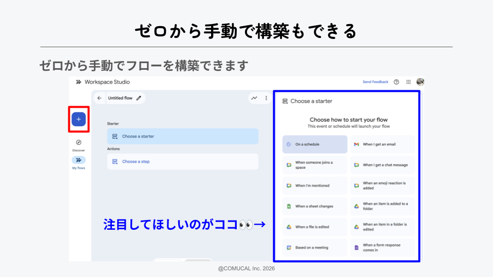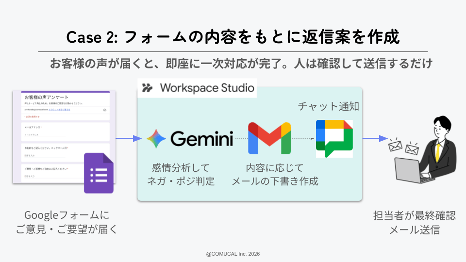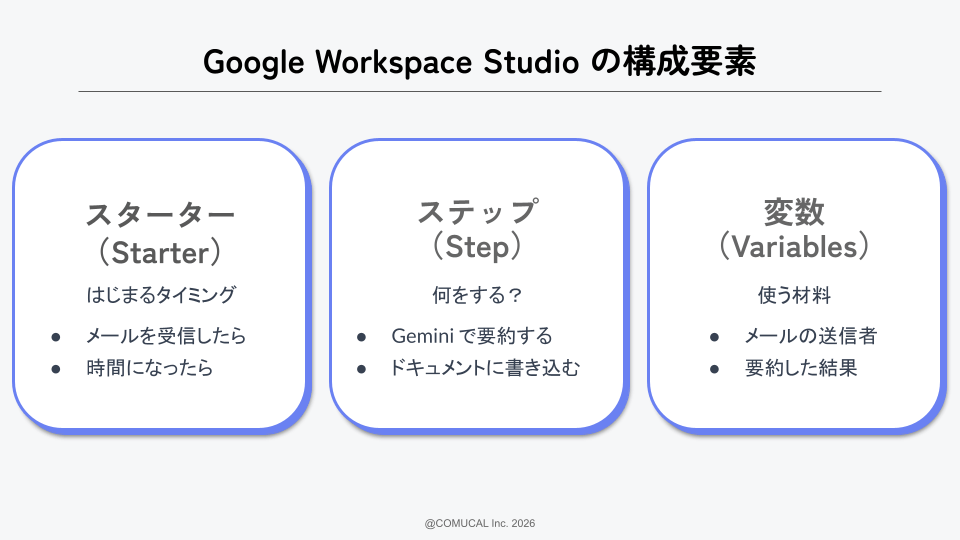 この仕組みをノーコードで実現できるのが、Googleの新しいツール「Google Workspace Studio」(旧称:Flows)です。