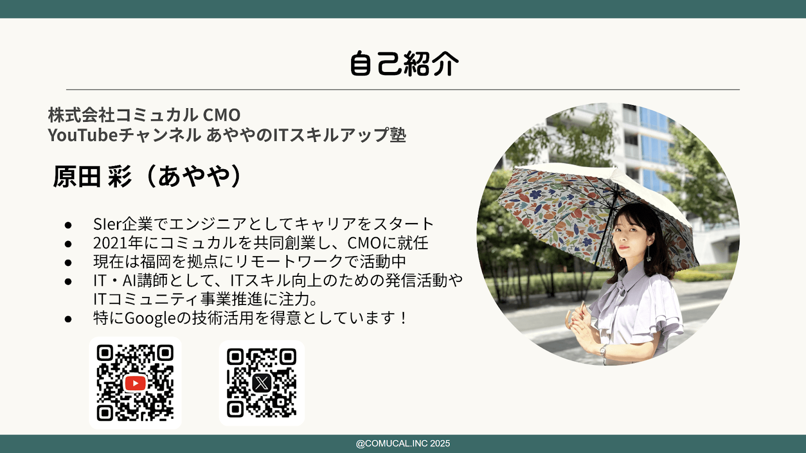 YouTubeチャンネル あややのITスキルアップ塾 にて、Google Workspace や生成AIの最新情報、活用術を分かりやすく発信中。