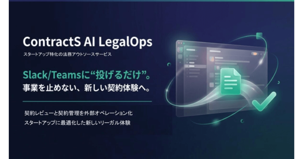 ContractS株式会社は、Legal Agent法律事務所と連携したスタートアップ向けの法務アウトソースサービス、「ContractS AI LegalOps」を正式に提供開始しました。