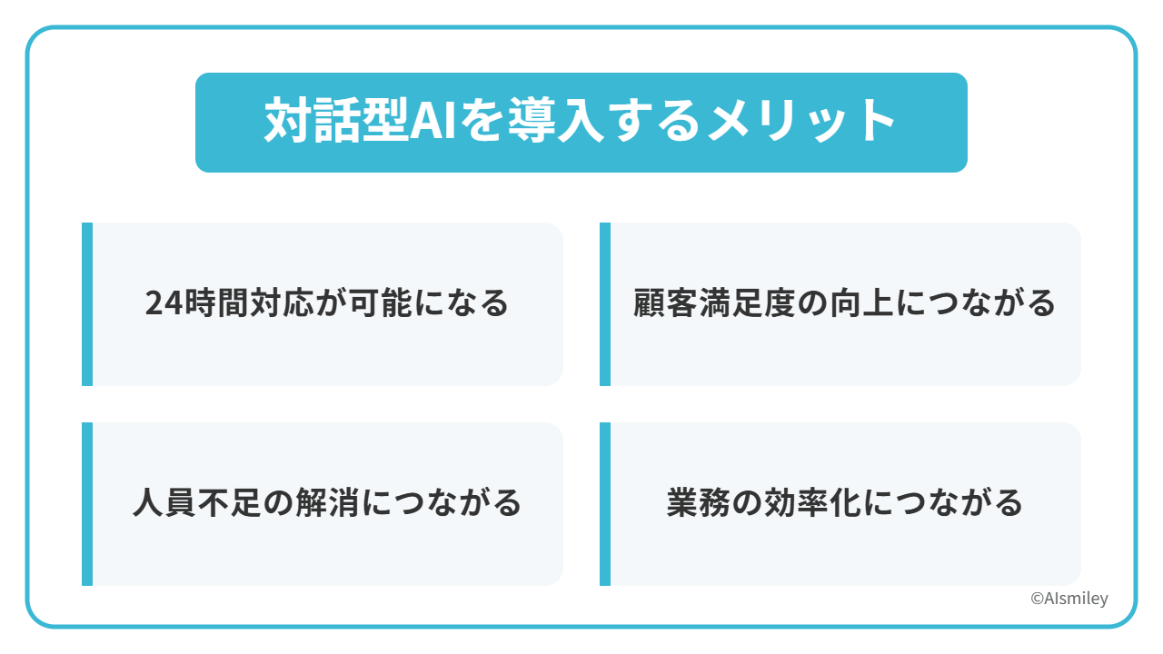 注目を集める対話型AIですが、導入による主なメリットは、