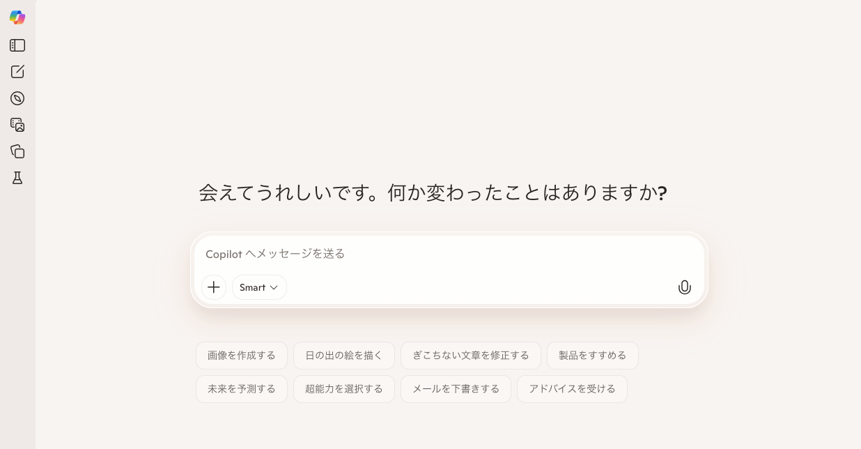 アイコンをクリックすると、デスクトップ画面の右側にサイドバーとしてCopilotが表示され、他のアプリで作業をしながら画像生成を行える点が便利です。