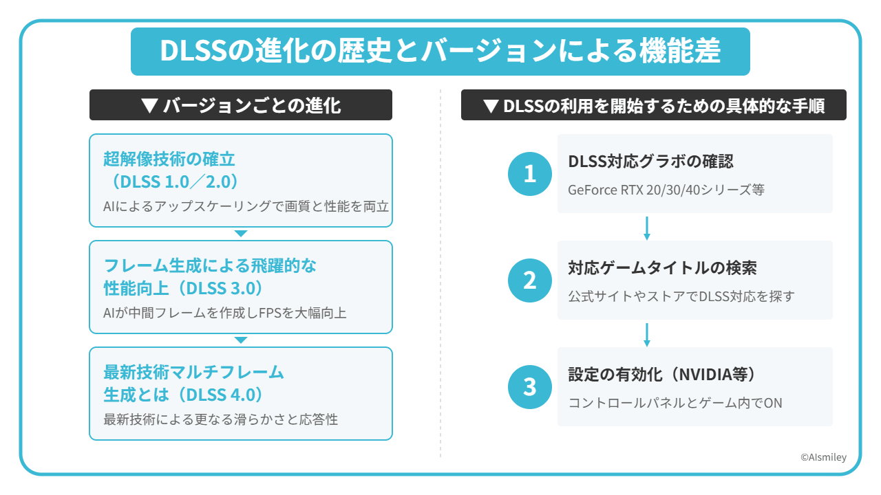 DLSSのバージョンごとに対応するRTXシリーズをまとめました。