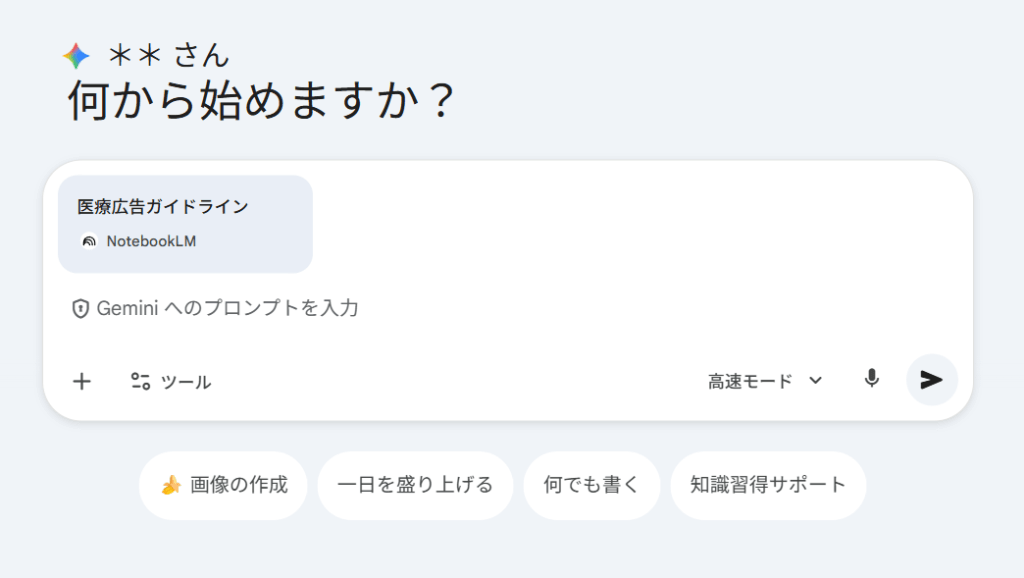 Geminiの画面から直接ノートブックを読み込む機能が実装されています(※設定が必要な場合があります)。
