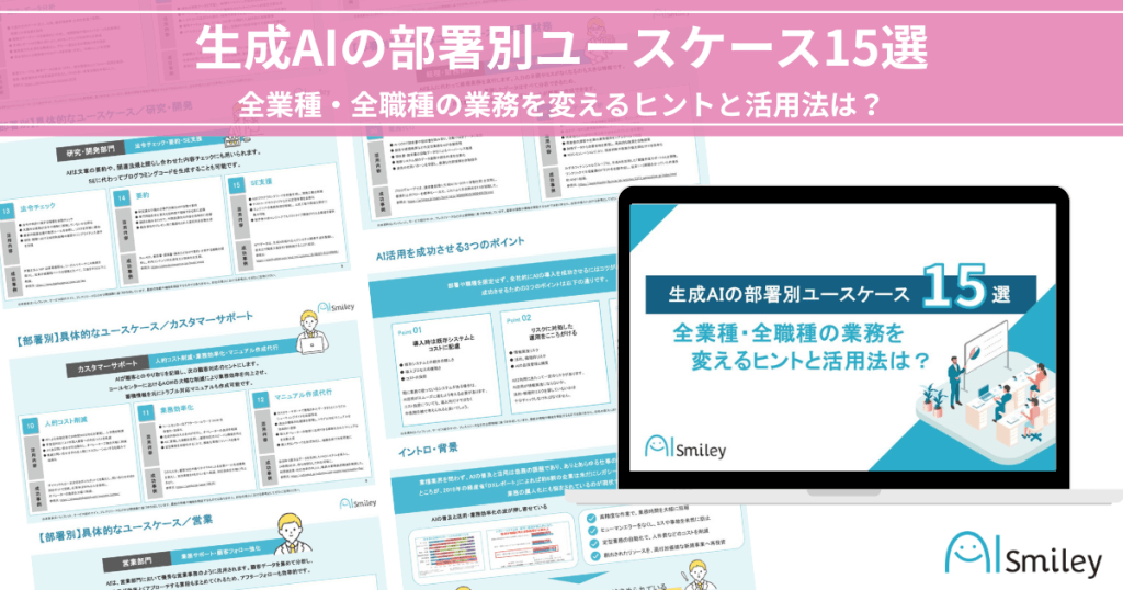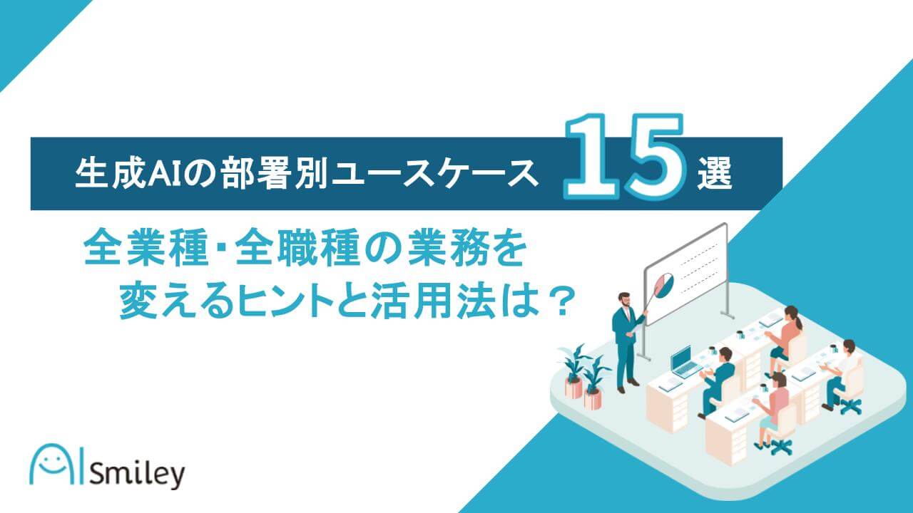 AIポータルメディア「AIsmiley」を運営する株式会社アイスマイリーは、生成AIの具体的な活用法を部署別に解説した資料「生成AIの部署別ユースケース15選 –全業種・全職種の業務を変えるヒントと活用法は?–」を2025年10月15日(水)に公開しました。