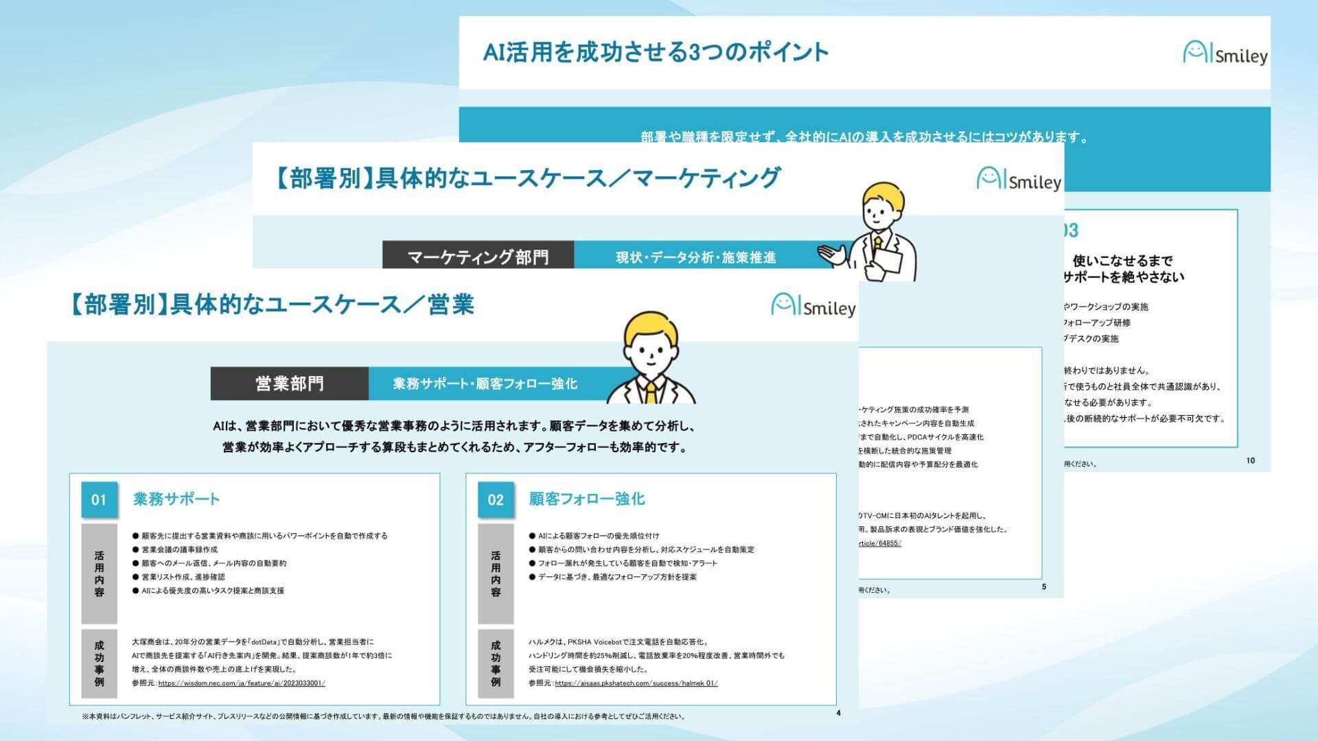 さらに、各部署ごとに企業の成功事例も交え、より実践的な活用法を学べます。