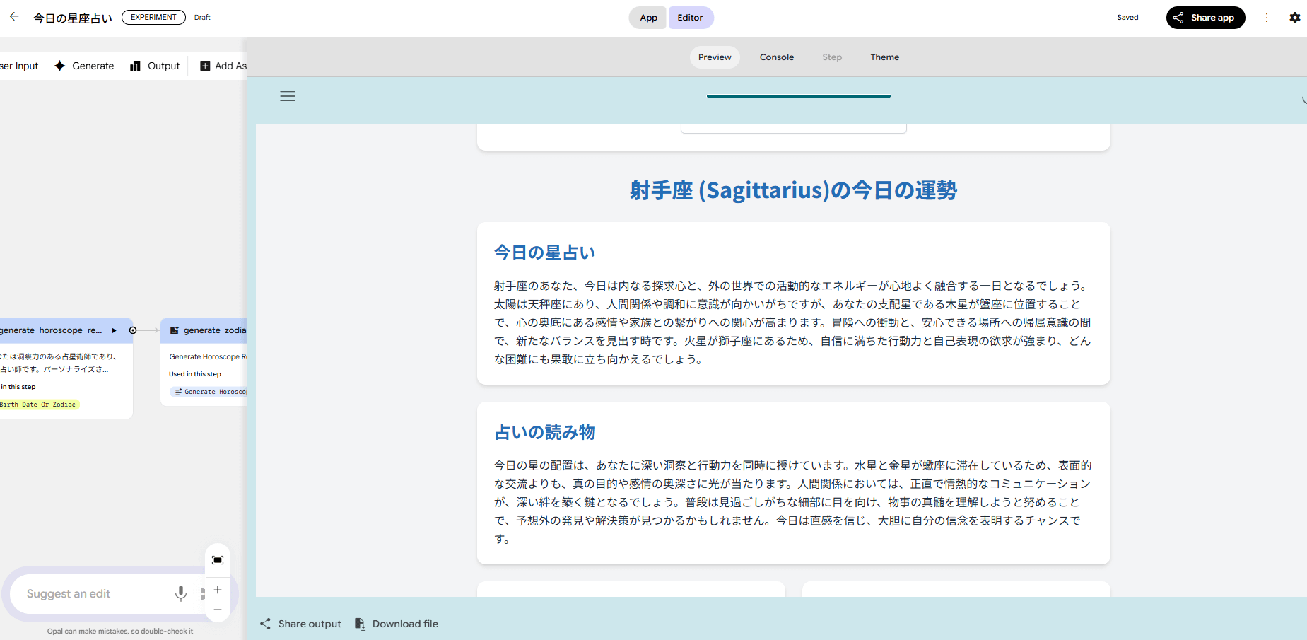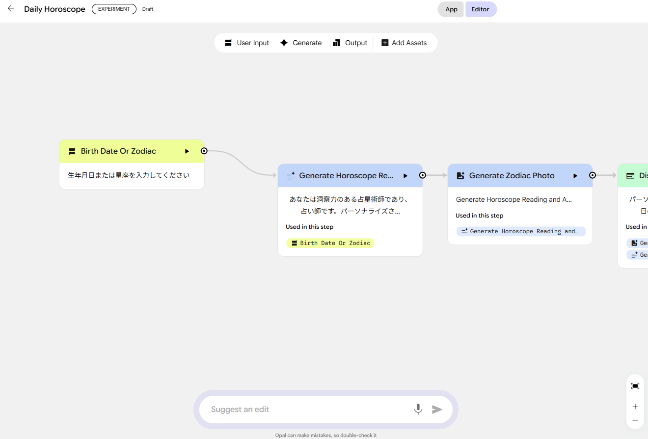 参考:Google For Developers「Opal のご紹介: AI ミニアプリの記述、作成、共有」