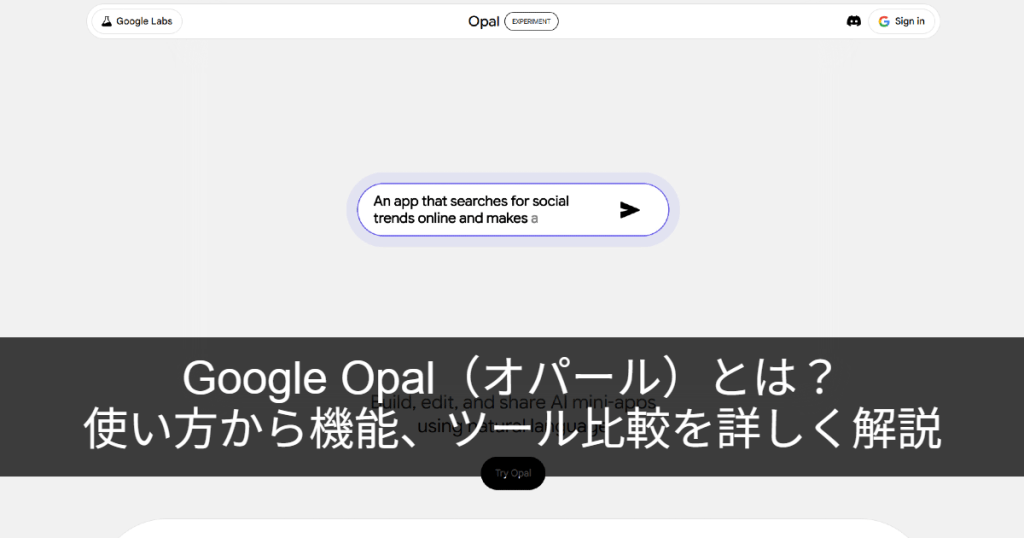 Google Opalとは2025年7月24日にGoogleが発表した、自然言語を使ってAIミニアプリを構築・共有できる新しいサービスで、読み方は「グーグル オパール」です。