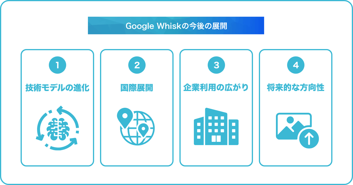 Google Whiskは技術進化・国際展開・企業活用の三本柱で今後も拡大が見込まれています。