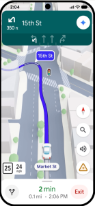 運転の負担を軽減する新機能も追加されました。スマートズーム機能や建物の透過表示でルートを広く確認でき、カーブや車線変更も余裕を持って準備できます。音声案内も友人が話すような自然な表現に刷新され、視覚的なガイドと共に次の行動を明確に示します。