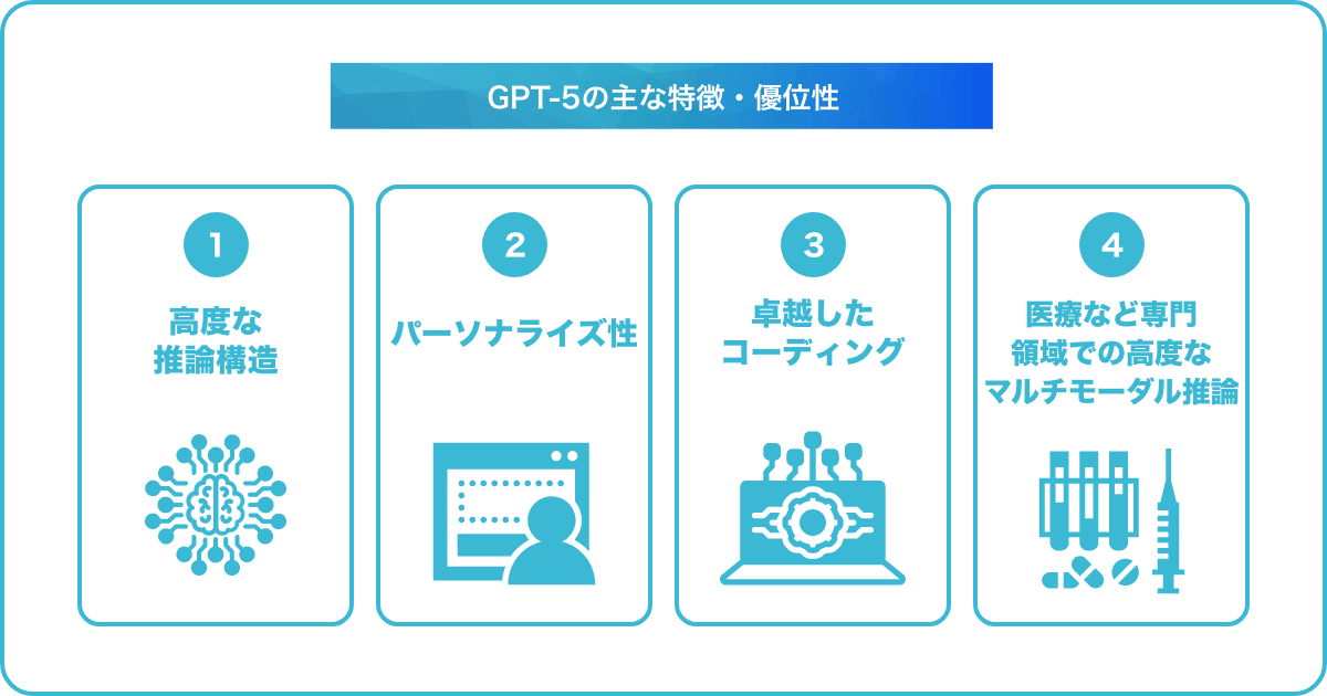 GPT-4は自然言語処理における大きな成果を残しましたが、GPT-5はさらに長文理解、マルチモーダル対応、カスタマイズ性で強化され、ビジネス現場での実用度が高まったからです。