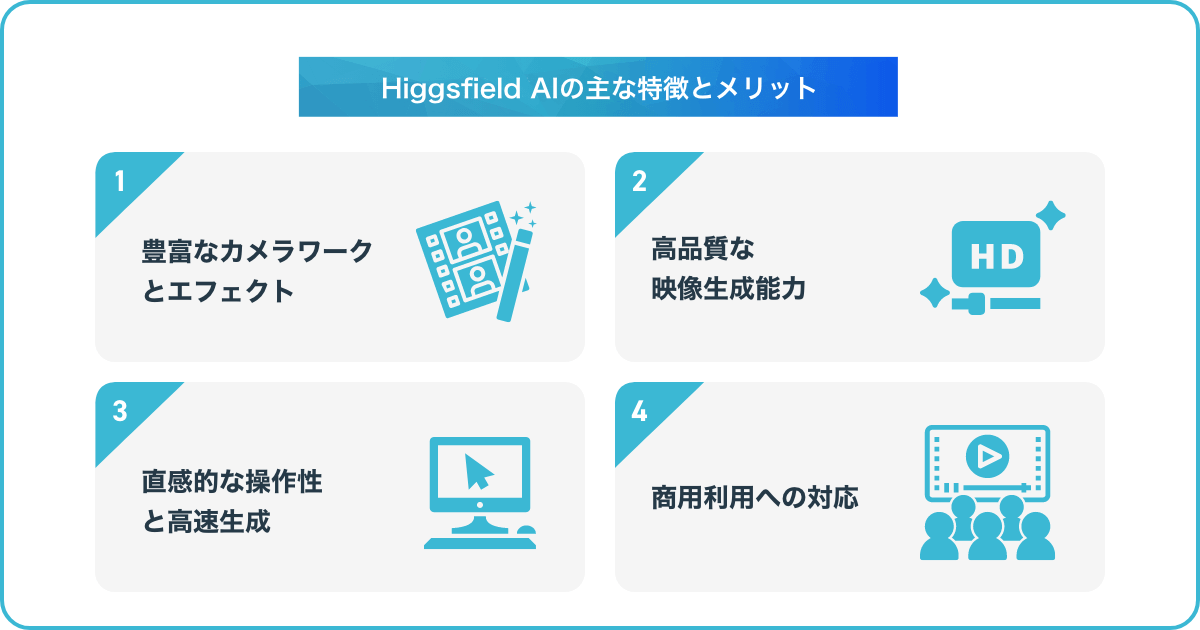 この記事では、Higgsfield AIの基本的な機能から、その特徴、具体的な活用事例、そして導入におけるメリット・デメリットまで徹底解説します。