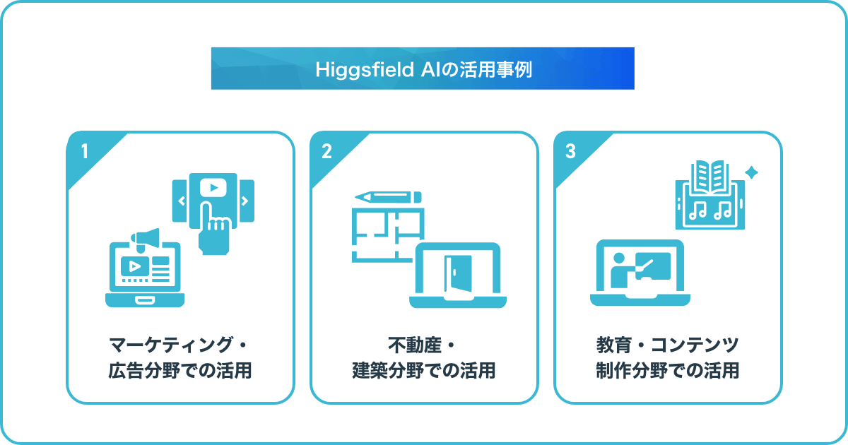 Higgsfield AIは、その汎用性の高さから、さまざまなビジネスシーンで活用されています。