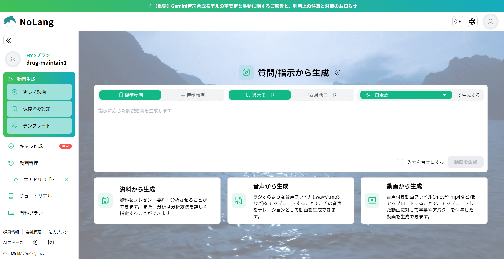 NoLangは、無料で直感的に使える革新的なAI動画生成ツールです。SNS・ビジネス・教育など、さまざまなシーンに対応できる柔軟性と、商用利用が可能な自由度の高さが大きな魅力です。