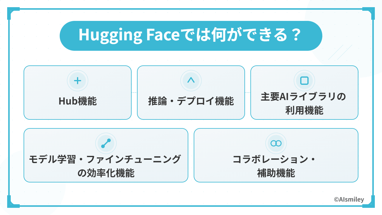 Hugging Faceのコラボレーション・補助機能とは、AIモデルの開発・検証・改善・共有といった工程を、チームや組織で効率よく進めるための支援ライブラリ群です。
