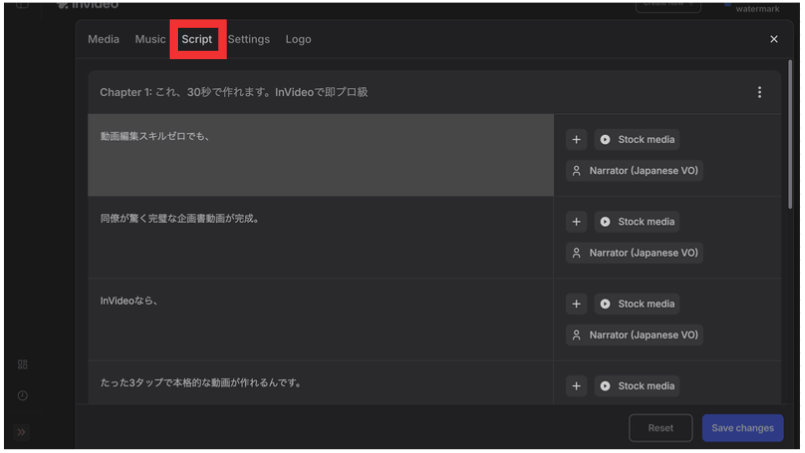 ChatGPTなどの生成AIで台本を作成し、その内容をInvideo AI にアップロードすることで顔出しなしでも簡単にYouTube動画を制作できます。