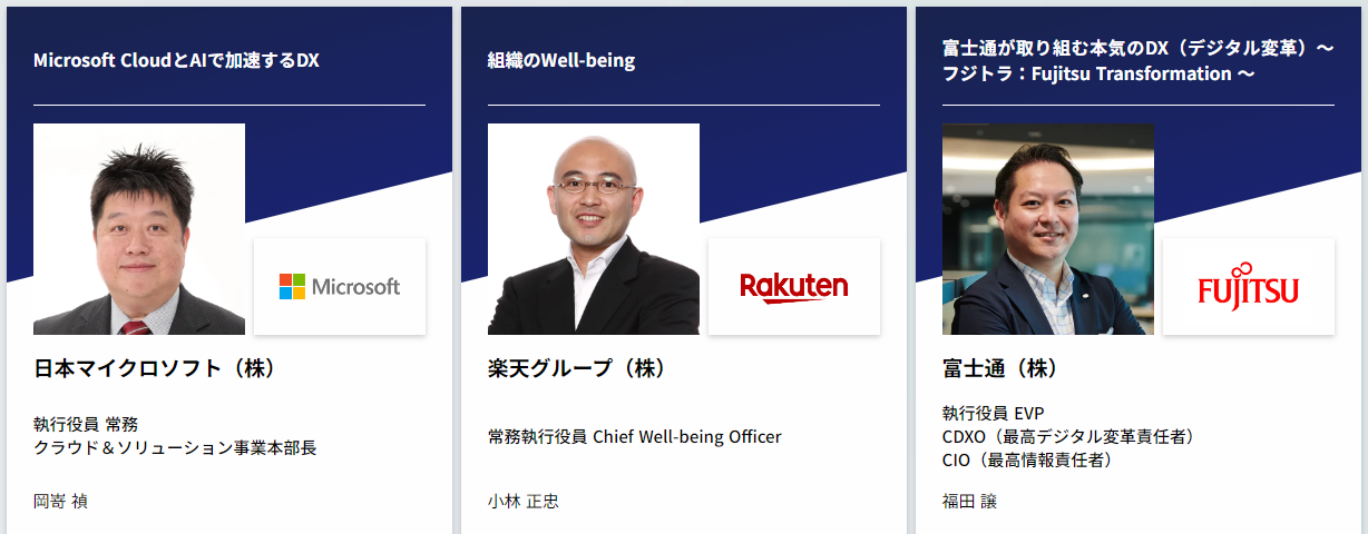 また併催セミナーでは日本マイクロソフト 常務による『ChatGPT×DX』セミナーをはじめ、サッポロ、ベネッセ、富士通など業界トップ企業の役員などが連日登壇。DX化、経営課題解決、働き方改革の最新事例を学べます。