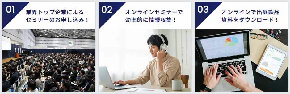 来場登録によりセミナー無料申込、出展製品資料ダウンロードなど様々な特典がございますので、ご登録の上、ぜひご来場ください。