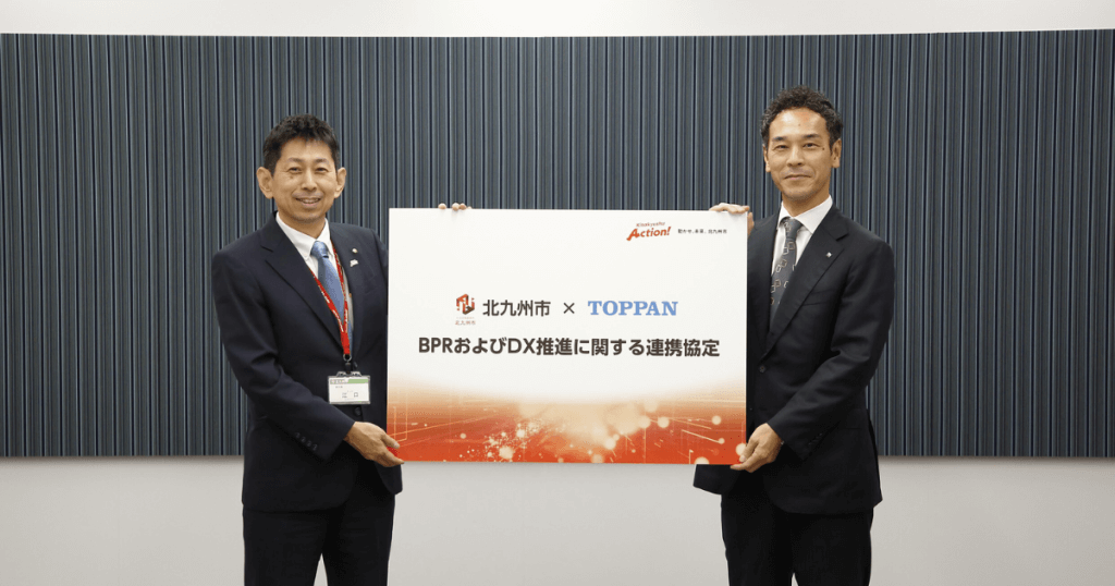 福岡県北九州市とTOPPAN株式会社は、年間約421万時間のノンコア業務を改革するため、BPR(ビジネスプロセス・リエンジニアリング)およびDX推進に関する連携協定を締結しました。