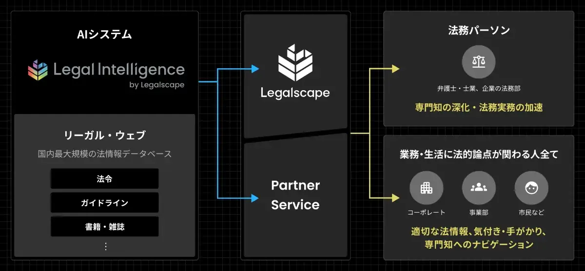 Legalscapeは今後も、法情報の網羅的かつ迅速な収集やAI技術の進化、国内外のパートナー連携の拡大等を通じて、あらゆる法情報が統合された信頼できる情報基盤を構築し、ユーザーやパートナーとともに「Legal Intelligence」を育て、法と人・社会の関わりをアップデートしていくとしています。
