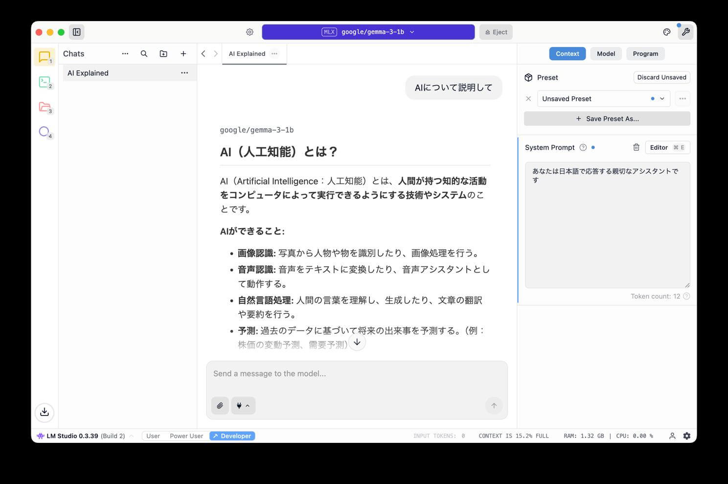LM Studioでは、AIの振る舞いをカスタマイズするためにシステムプロンプトが非常に重要な役割を果たします。
