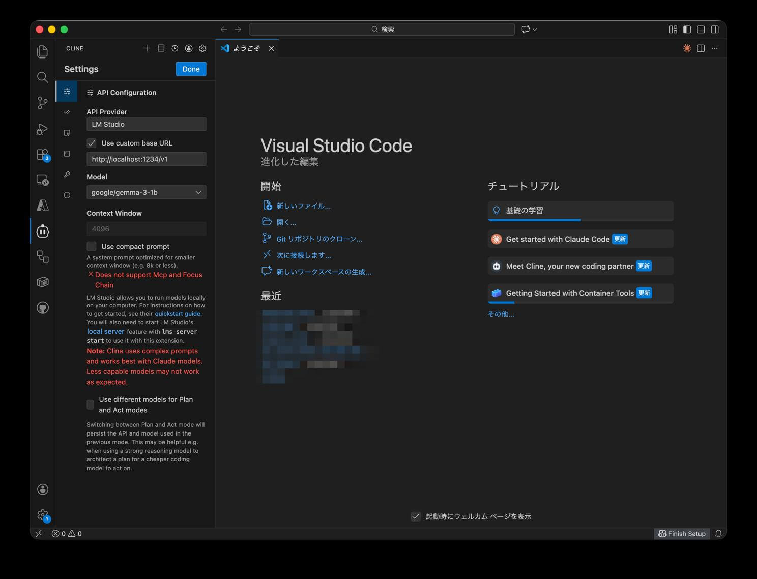 VS Codeで開発作業をしながらLM Studioのモデルを活用したい方には、拡張機能を使った連携がおすすめです。