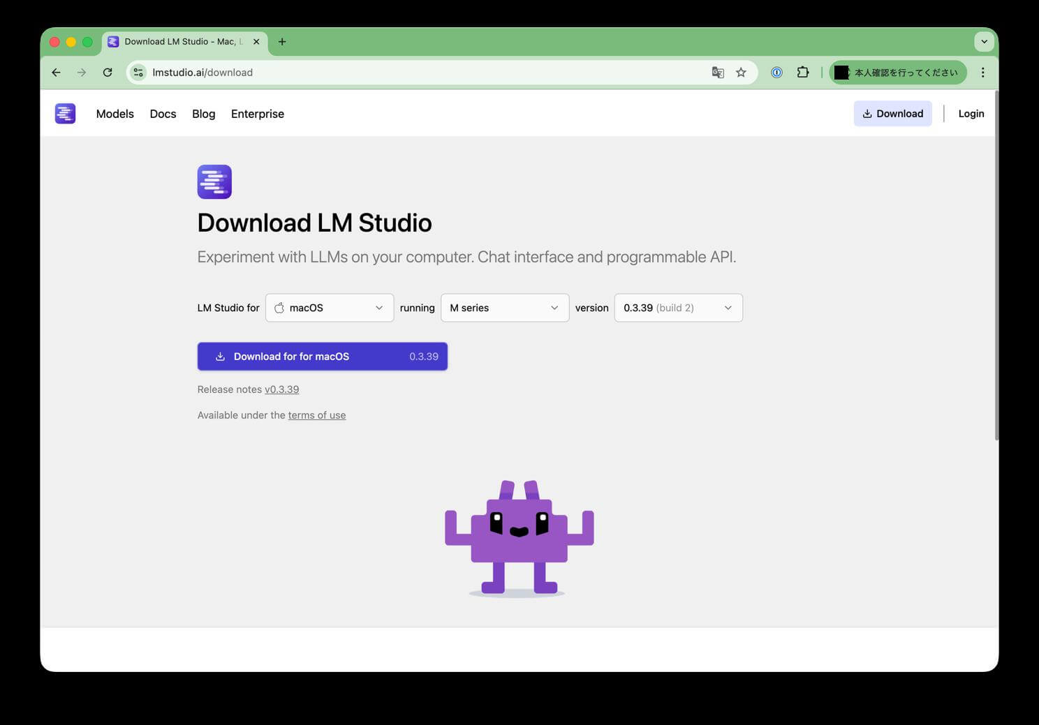 • 公式サイト(lmstudio.ai)からお使いのOSに合ったインストーラーをダウンロード