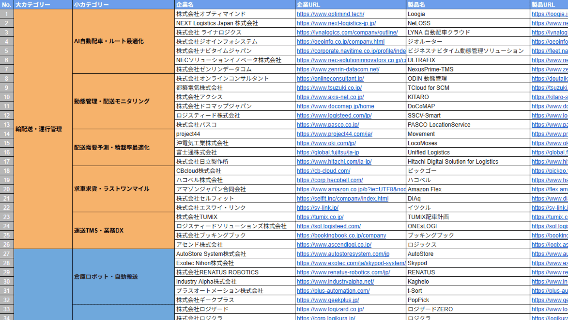 物流・交通・運輸向けAIサービス提供企業リスト(Excel)
