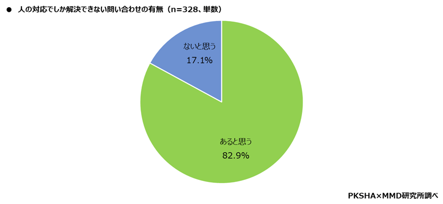 人がやらないと解決できないカスタマーサポートがあると思うか、という質問には「あると思う」が82.9%、「ないと思う」が17.1%という結果でした。