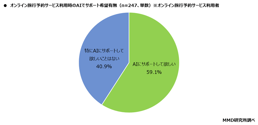 MMD、「オンライン旅行サービス利用とそのAI利用の実態調査」の調査結果を公開。AIにサポートして欲しい人は59.1%