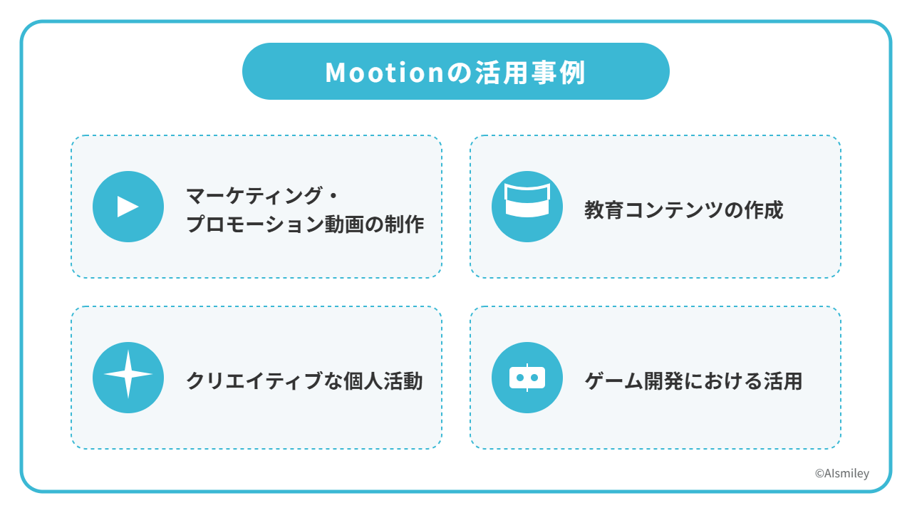 Mootionは、その手軽さと高品質なアウトプットから、多様な分野で活用されています。ここでは、いくつかの代表的な活用事例をご紹介します。