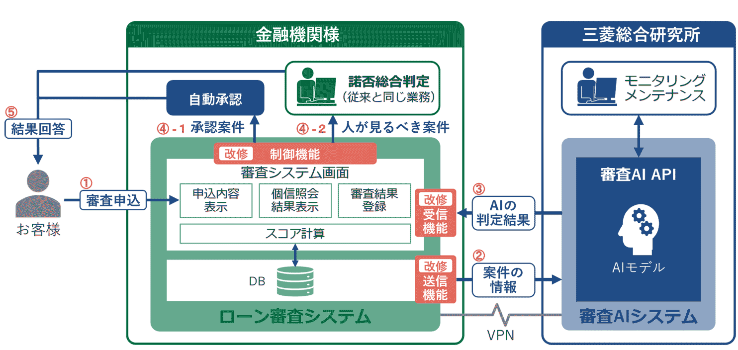 • 「審査AIシステム」を、金融機関のローン審査システムに連携し、審査の自動化を促進